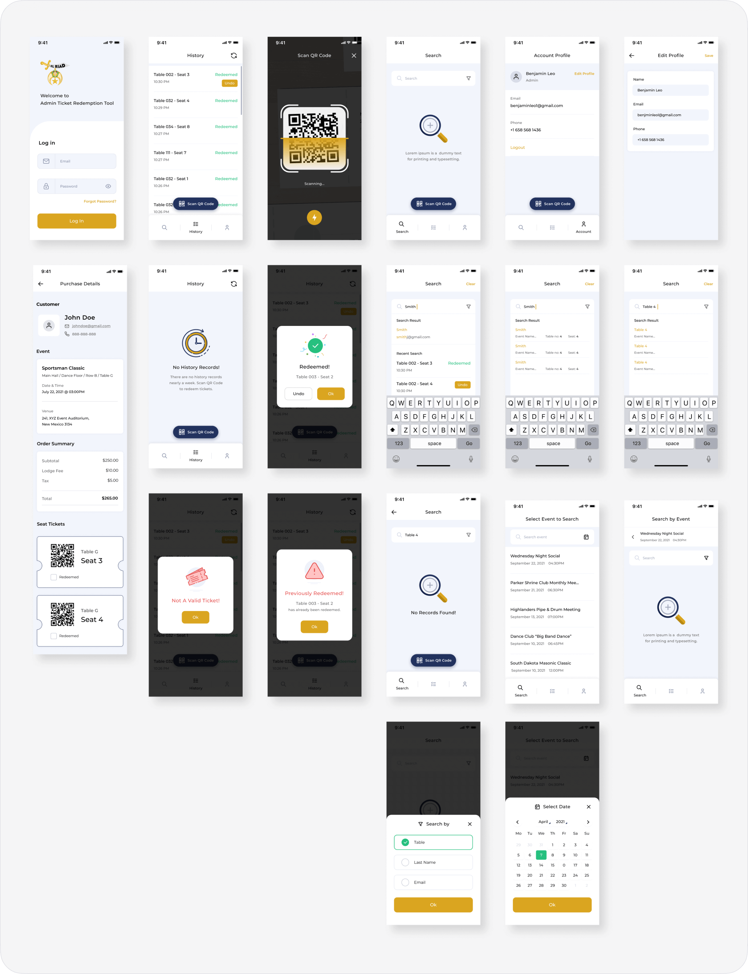 We identified key needs for the ticketing system, it should work with the current WordPress site, support reserved seating, and let users pick specific seats or tables. It should also allow code-based access for certain tables and include ticket scanning for quick entry. Tickets must show seat and table numbers clearly.